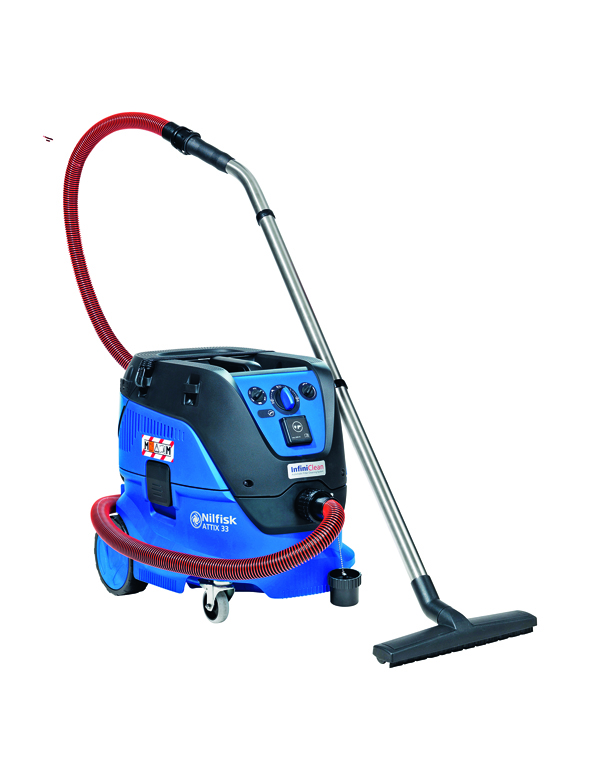 Der Sicherheitssauger »Attix 33-2M IC Mobile« von Nilfisk verfügt über einen M-Klasse-Flachfaltenfilter mit 99,9 % Abscheidegrad und »PTFE«-Anti-Haft-Membran, die sich nach dem Arbeitsvorgang unkompliziert mit Wasser reinigen lässt.