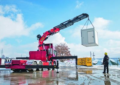 Ob Baugewerbe, Transport und Logistik oder Infrastrukturprojekte – viele Branchen stehen vor der Herausforderung, Baumaterialien in großen Höhen nutzbar zu machen. Mit der kippbaren Krangabel bietet Palfinger nun eine neue innovative Lösung für den schnellen und einfachen Transport von palettiertem, aber auch unpalletiertem Material direkt an seinen Bestimmungsort. Aufgrund ihrer Geometrie und Flexibilität können Lasten in nahezu jeder Öffnung direkt eingebracht werden. Demontagearbeiten an Geländern oder Verkleidungen entfallen und das riskante, händische »Reinziehen« von Material gehört der Vergangenheit an. Dieser Vorteil ermöglicht ein präzises und effizientes Arbeiten.