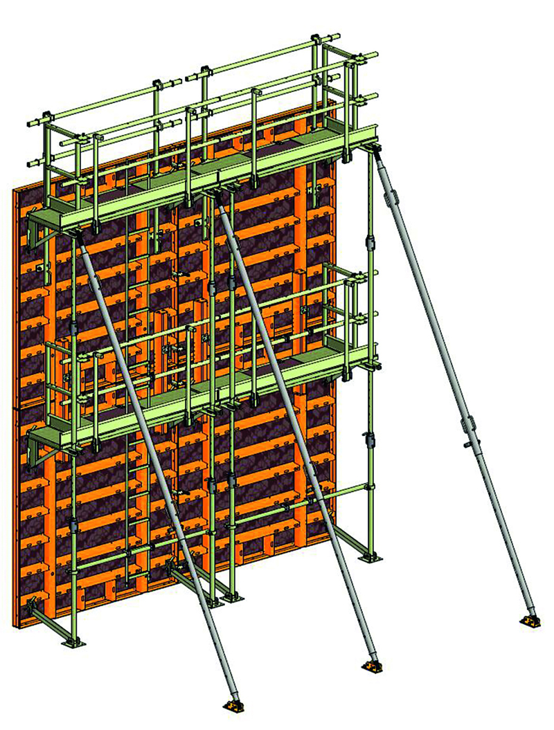 In die Systemeinheit sind Leitern, Beläge und Geländer bereits integriert. So kann eine komplette Einheit transportiert und aufgestellt werden, ohne Montieren von Einzelteilen oder bauseitigen Ergänzungen. Beim Umsetzen der Schalungseinheiten bleibt die Multip an der Schalung montiert und wird einfach mit umgesetzt. Die Multip gibt es in zwei Systemvarianten: Für die Systemschalung »Logo.3« sowie für die radienverstellbare Trapezträgerrundschalung (»TTR«, »TTS« und »TTK«).