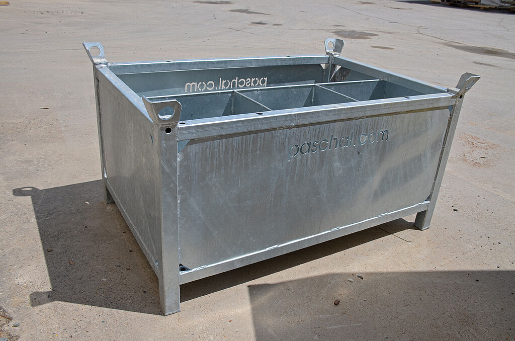 Ebenfalls neu im Portfolio ist die Stapelbarelle in den Maßen 120 x 80 cm und mit einem Gewicht von 53 kg. Diese ist an die Abmessungen der Transport- und Gitterboxen angepasst und für Schalungsteile bis 150 cm sowie u. a. Schienen ausgelegt. Diese Barelle zeichnet sich durch ihren stabilen Stahlrahmen aus, der durch vier nach oben gerichtete Streben an jeder Ecke ergänzt wird. Diese Konstruktion schützt das zu transportierende Material vor dem Herausfallen, während Kranösen an den Enden der Streben den Transport mittels Kran erleichtern. Paschal beschreibt die Barelle als robust und leistungsfähig. Die Möglichkeit, bis zu vier Barellen sicher übereinanderzustapeln, minimiert nicht nur den Platzbedarf, sondern ermöglicht eine Optimierung der Lagerungs- und Transportprozesse. Durch die feuerverzinkte Oberfläche können Nutzer von einer langen Lebensdauer profitieren.
