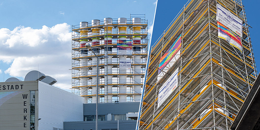 Auch bei der Neubeschichtung der Schornsteine des Gothaer Kraftwerks setzte B&E auf diese Vorteile: Gemeinsam mit den Gerüstexperten von Peri konnte eine Gerüstlösung erarbeitet werden, die trotz großer Herausforderungen eine konsequent hohe Sicherheit bei der späteren Nutzung ermöglicht habe. Nicht zuletzt deshalb fiel die Entscheidung des ausführenden Malerbetriebs farbenfroh aus Arnstadt auf die B&E-Peri-Kombination.