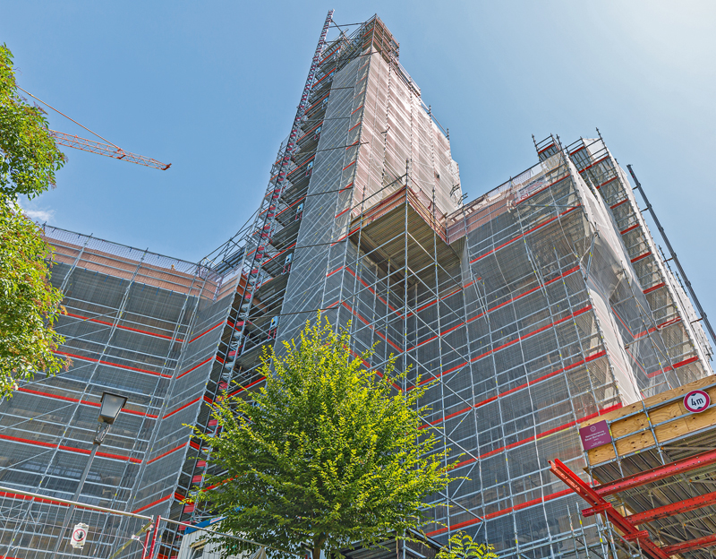 Bei beiden Ansprüchen kann das Unternehmen Peri nach eigenen Angaben den verschiedenen Baubeteiligten Gerüstlösungen anbieten, die unter dem Aspekt der Arbeits- und Verwendungssicherheit »State of the Art« sind. Gleichzeitig ist das Anforderungs- und Einsatzspektrum im Gerüstbau heute deutlich komplexer: Das klassische Fassadengerüst wird mehr und mehr durch den Bau von Spezialgerüsten ergänzt – zum Beispiel Trag- und Treppentürme, Brückengerüstbau, Industriegerüste oder Zugangstechniken im öffentlichen Bereich. In der Zusammenschau der oben genannten Faktoren wird deutlich, wie hoch die Ansprüche an das Pflichtenheft der Gerüsttechnik geworden sind, um dem Gerüstbauer und seinen Kunden aus den verschiedenen Gewerken ein adäquates, zukunftsgerechtes Arbeitsmittel an die Hand geben zu können.