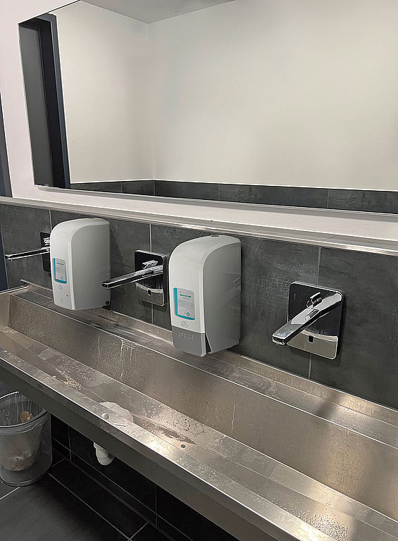 Spendersysteme sind daher ein wesentlicher Bestandteil eines jeden Handhygiene- und Hautschutzkonzepts. Auf der A+A präsentiert PGP eine neue Generation von Spendersystemen: den »Variomat Pro Touchless« und den »Variomat Pro Standard«. Der »Variomat Pro Touchless« punktet zum einen durch seine kompakte Größe, zum anderen durch die berühungslose Bedienbarkeit durch einen kapazitiven Sensor. Dieser hat laut PGP den Vorteil, dass er viel präziser reagiert als die bekannten Infrarotsensoren. Fehlfunktonen sollen damit der Vergangenheit angehören. Da das Produkt nicht mit dem Spender in Berührung kommt, ist er zudem besonders hygienisch. Der »Variomat Pro Touchless« wird mit 1-l-«Vario«-Flaschen bestückt.