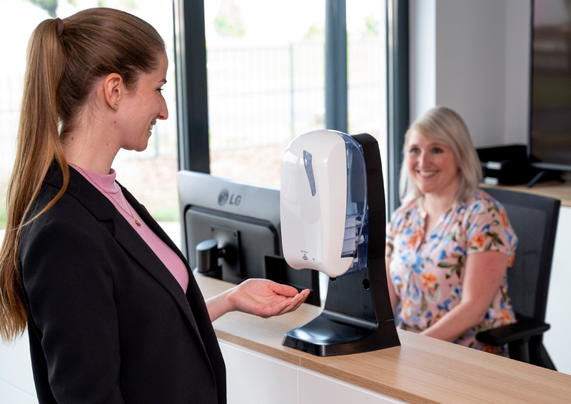 Im Mittelpunkt des Messeauftritts standen neben Themen wie hautfreundliche Desinfektionsmittel und praktische Spendersysteme auch generelle Handhygiene- und Hautschutzkonzepte sowie der professionelle UV-Schutz. »Gerade Händedesinfektionsmittel sind durch die Corona-Krise verstärkt in den Fokus gerückt«, so Andreas Todtenhöfer. Zu den von PGP vorgestellten Lösungen zählte beispielsweise das »Myxal«-Desinfektionsmittel-Programm. Dazu zählt unter anderem das »Myxal Sept«Gel, ein Händedesinfektionsmittel auf Ethanol-Basis. Es wirkt laut Hersteller gegen Bakterien, Hefen und alle behüllten Viren wie etwa Corona-, Influenza- oder Vaccinia-Viren.