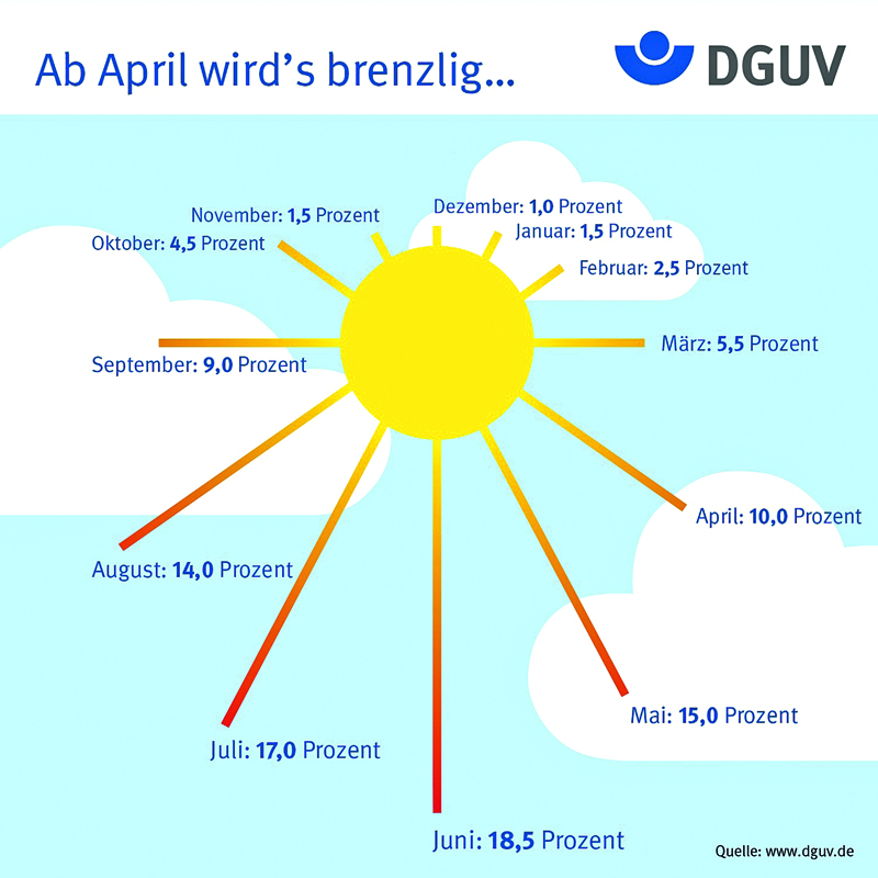 Beschäftigte, die im Freien arbeiten, sind teils intensiver UV-Strahlung ausgesetzt: Dadurch steigt das Risiko, an weißem Hautkrebs zu erkranken. Seit der weiße Hautkrebs und seine Vorstufen als Berufskrankheit anerkannt werden können, sind die Fallzahlen stetig gestiegen und erreichten im Berichtsjahr 2017 einen neuen Höhepunkt. Prävention ist also extrem wichtig. Dabei sollten Berufstätige professionelle Mittel für den beruflichen und dauerhaften Gebrauch verwenden.