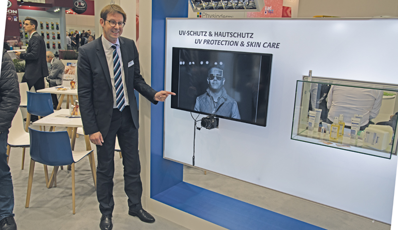 Nicht zuletzt deshalb nahm das Thema Hautschutz auf der A+A erneut viel Raum ein, um einerseits auf die Gefahren, andererseits aber auch auf sinnvolle Gegenmaßnahmen hinzuweisen. Einen großen und wichtigen Beitrag hierzu hat zum Beispiel Peter Greven Physioderm (PGP) geleistet. Die Standbesucher durften sich beispielsweise einem interessanten Test unterziehen, um herauszufinden, ob sie sich bei der Verwendung von UV-Schutzmitteln auch tatsächlich richtig verhalten. Dazu konnten sich die Standbesucher auf einen Stuhl setzen und sich von einer Spezialkamera filmen lassen. Auf einem Bildschirm war dann sofort zu erkennen, welche Bereiche des Gesichts tatsächlich ausreichend geschützt sind und wo die UV-Strahlen dennoch hingelangen. Hintergrund ist laut PGP der, dass die Nutzung von Schutzmitteln zwar zunehme, die Dosierung aber häufig die falsche sei. Demnach sei die aufgetragene Menge in vielen Fällen zu gering oder würde nicht den gesamten Hautbereich abdecken.