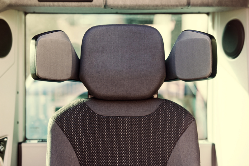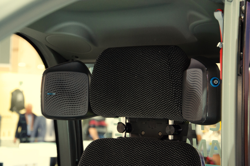 Lukas Henkel: Grundsätzlich haben wir unser Produkt »ANCOR« (Active-Noise-Cancelling Offered by Recalm) so entwickelt, dass es auch nachrüstbar ist. Um das Produkt installieren zu können, ist ein normal langer Sitzrücken samt Kopfstützte nötig. »ANCOR« wird von hinten an die Streben der Kopfstütze geschraubt und umfasst somit die Kopfstütze. Zudem braucht es eine Kabine – für offene Fahrerstände, wie etwa bei Straßenfertigern, ist das System nicht geeignet. Sind Kopfstütze und Kabine gegeben, lässt sich das Produkt theoretisch auf jeder Baumaschine nachrüsten bzw. installieren.