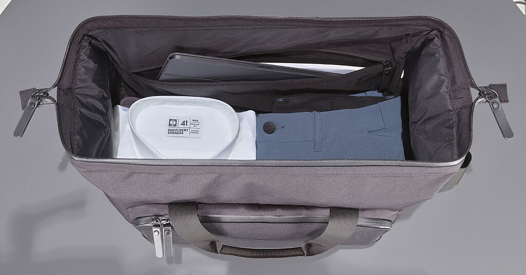 Durch ihre robuste Verarbeitung eignen sich die work&travel-Taschen nicht nur fürs Reisen, sondern auch im direkten Arbeitseinsatz – zum Beispiel auf Montage. Und auch nach Feierabend lassen sich Taschen und Rucksack flexibel weiternutzen.