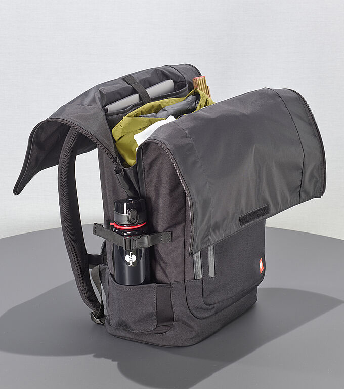 Wer lieber per Rucksack reist, ist mit der Rolltop-Variante aus der work&travel-Kollektion besonders flexibel unterwegs. Je nachdem, wie viel Gepäck dabei ist, lässt sich der Rucksack entweder kompakter zusammenrollen oder er gibt zusätzlichen Platz frei. Seitliche Reißverschlüsse helfen dabei, auch weiter unten verstauten Inhalt schnell griffbereit zu haben, ohne alles auszuräumen.