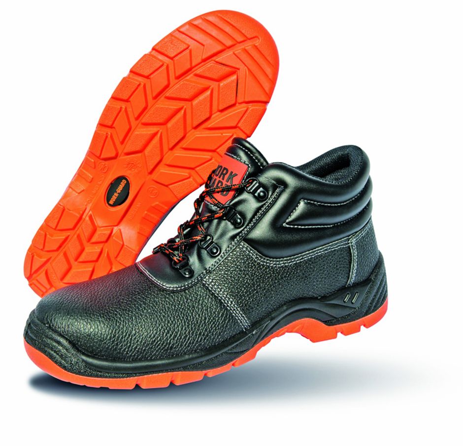 Arbeitsschuhe sind ebenfalls ein Teil des »Workguard«-Arbeitsbekleidungssortiments. Result bietet hier eine umfangreiche Kollektion an Stiefeln, Schuhen und Trainingsschuhen an: zum Beispiel den »R340X Defence Safety Boot« mit Stahlzwischensohle für den Fußsohlenschutz. Der gepolsterte, wasserabweisende Stiefel ist den Farben Orange und Schwarz in den EU-Größen 40 bis 48 verfügbar.