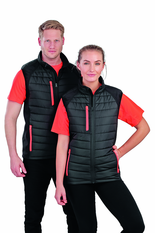 Neben einer Wattierung in »Chevron«-Optik, bedruckbaren Softshell-Ärmeln und kontrastfarbenen Reißverschlüssen, sind die Softshell-Jacke »R237X Black Compass Padded« und die Softshell-Weste »R238X Black Compass Padded« wasserabweisend und winddicht und damit geeignet für die aktuelle Wintersaison.