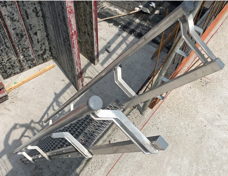 Bei vielen Bauvorhaben bietet der Einsatz von »Stafe« in der Praxis handfeste Pluspunkte, wie Alfred Köder, Polier Direktion Stuttgart, Ed. Züblin AG Stuttgart, klarstellt: »Die Sicherheit für alle am Bau Beteiligten steht bei uns an erster Stelle. Daher setzen wir seit mehr als acht Jahren auf die Steiltreppe von Robusta. Die Fakten sprechen für sich: Wir haben seither keine Abstürze mehr zu verzeichnen. Mit dem Handlauf hat man eine oder sogar beide Hände frei für den Transport von Werkzeugen, unterschiedliche Höhen können mühelos überwunden werden.« Durch die stets waagerechten Trittflächen hat man zudem immer einen ordentlichen Tritt. Der Clou: »Stafe« ist mehrfach einsetzbar – je mehr wir davon einsetzen, umso besser rechnen sie sich. Normale Leitern bergen aus Sicht des Herstellers diverse Nachteile: Selbst gezimmerte Lösungen mit Holzbrettern sind im Endeffekt teurer und zeitaufwendiger. Für den Einstieg muss umständlich seitlich herumgegangen werden.