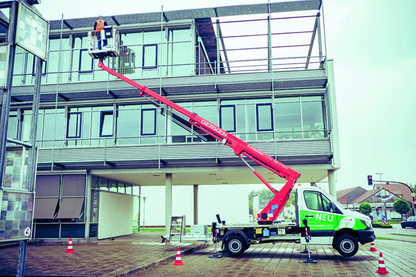 Christian Gerken, Geschäftsführer des gleichnamigen Vermietunternehmens, konnte als erster Käufer die Hybrid Lkw-Arbeitsbühne schon vor der Weltpremiere auf den »Platformers’ Days« im September testen. »Die Technologie, funktioniert einwandfrei und vor allem schnell. Man merkt bei den Bewegungen keinen Unterschied zum herkömmlichen Antrieb«, stellte er nach der Testfahrt auf seinem Firmengelände in Düsseldorf fest.
