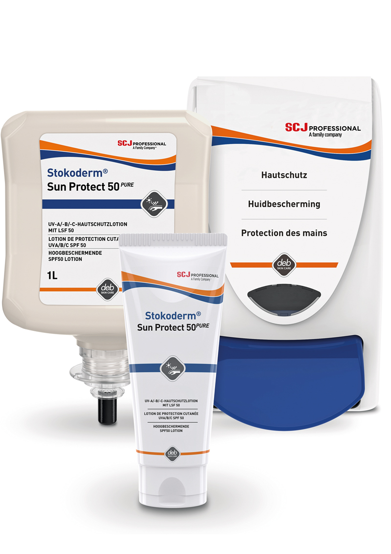 Bei SC Johnson steht die »Stokoderm Sun Protect 50 Pure« im Mittelpunkt. Dabei handelt es sich um eine Sonnenschutzcreme, die nicht nur einen empfehlenswert hohen Lichtschutzfaktor von 50, sondern überdies eine wasserfeste Formulierung aufweist. Laut Hersteller eigne sich die Creme ideal für jene, die tagtäglich auf der Baustelle im Freien arbeiten und demnach besonders starker Sonnenstrahlung ausgesetzt sind. Die «50 Pure« ist überdies duftstofffrei und weist ein ausgewogenes UV-A-/UV-B Filtersystem mit Vitamin E auf. Schützen, so SC Johnson, könne die Creme effektiv vor Sonnenbrand und UV-bedingten Hautschäden, sodass sie sich besonders für Personen mit sehr starker UV-Exposition sowie für stark gefährdete Hautpartien eignet. Wichtig ist dem Unternehmen aber auch, es nicht nur bei der Bereitstellung von UV-Schutzcreme zu belassen. So rät der Hersteller dazu, den eigenen Mitarbeitern darüber hinaus auch Aufklärungsarbeit zu bieten, indem auf die direkten Gefahren von zu starker UV-Strahlung hingewiesen wird.