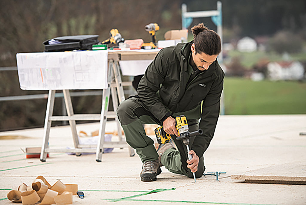 Um Temperaturschwankungen entgegenzutreten, empfiehlt Schöffel Pro die Kombination aus der Wetterschutzjacke »Schutzschild« und der Powerstretch-Jacke »Einheizer ZipIn«. Die nach EN 343 Klasse 4/4 zertifizierte Wetterschutzjacke ist durch Venturi-Membran robust, wasserdicht und atmungsaktiv. Aufgrund der 20 000 mm Wassersäule, verklebter Nähten und verstellbarer Armbündchen könne die 2-Lagen-Jacke absolut trocken halten. Die »Einheizer ZipIn« bietet optimale Wärmeleistung und Trocknung. Für kältere Temperaturen kann sie einfach und schnell als Wärmeschicht in die »Schutzschild« integriert werden.
