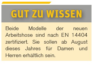 Die Hose ist in zwei Modellvarianten, als Bundhose »Maschine Knieschutz« und als Latzhose »Maschine Latz Knieschutz« voraussichtlich ab August dieses Jahres für Damen und Herren erhältlich.