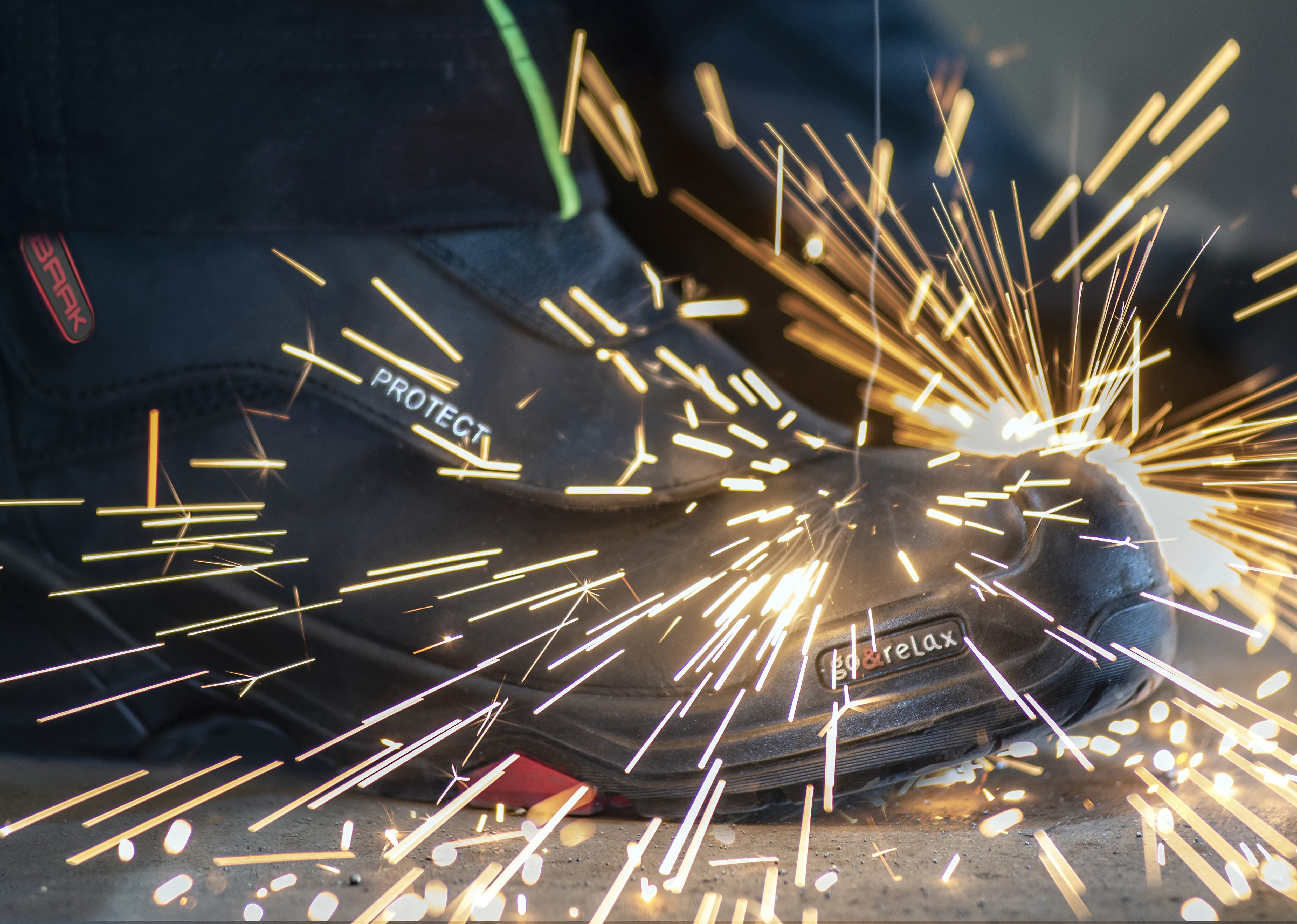 Der Stiefel mit Über- und Hinterkappe ist für Tätigkeiten wie Schweißen, Schleifen oder Trennen insgesamt so konstruiert, dass heiße Flüssigkeiten, wie Metallspritzer am Schaft herunterlaufen. Die Laufsohle ist zudem hitzebeständig bis zu einer Temperatur von 300 Grad. Der Klett-Schnellverschluss sichert bei Bedarf ein schnelles Ausziehen, das selbst mit Handschuhen ganz einfach geht. Die geschlossene Schutzlasche ist gepolstert und mit reflektierenden Applikationen versehen.