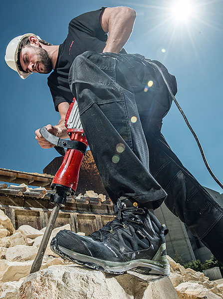 Die outdoor-geprägte Linie darf auch in den Innenbereich. Die »ESD«-Ausstattung qualifiziert sie u. a. für den Einsatz in der Industrie, in der »ESD«-Schuhe unverzichtbar sind. Sie verhindern eine elektrostatische Auf- sowie Entladung, die sensible elektronische Bauteile schädigen oder zerstören könnte.