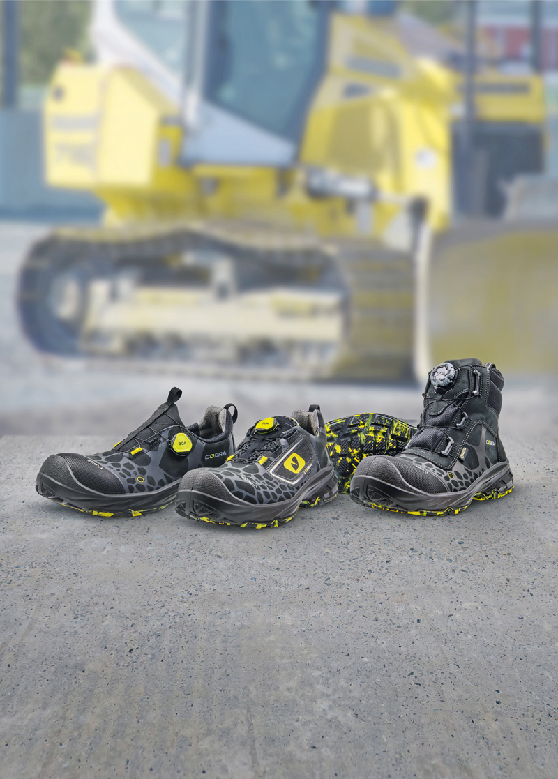 Die »Cobra«-Linie besteht aus insgesamt vier Modellen. So stehen unter anderem zwei verschiedene Halbschuhe zu Verfügung: »Cobra 1 Roller«, die alle Anforderungen der Sicherheitsklasse S1P erfüllen, sowie das S3-Modell »Cobra 2 Roller«, das nach Angaben des Herstellers besonders leicht an- und ausgezogen werden kann. Einen zusätzlichen Schutz des Knöchelbereichs durch »MemoryFoam« bieten die S3-Stiefeletten. Das Modell »Cobra GT RollerH Gore-Tex« ist überdies mit wasserdichtem und atmungsaktivem Futtermaterial ausgestattet. Um einhändiges Anziehen zu ermöglichen, verfügen alle Modelle über das »Boa«-Drehverschlusssystem. J