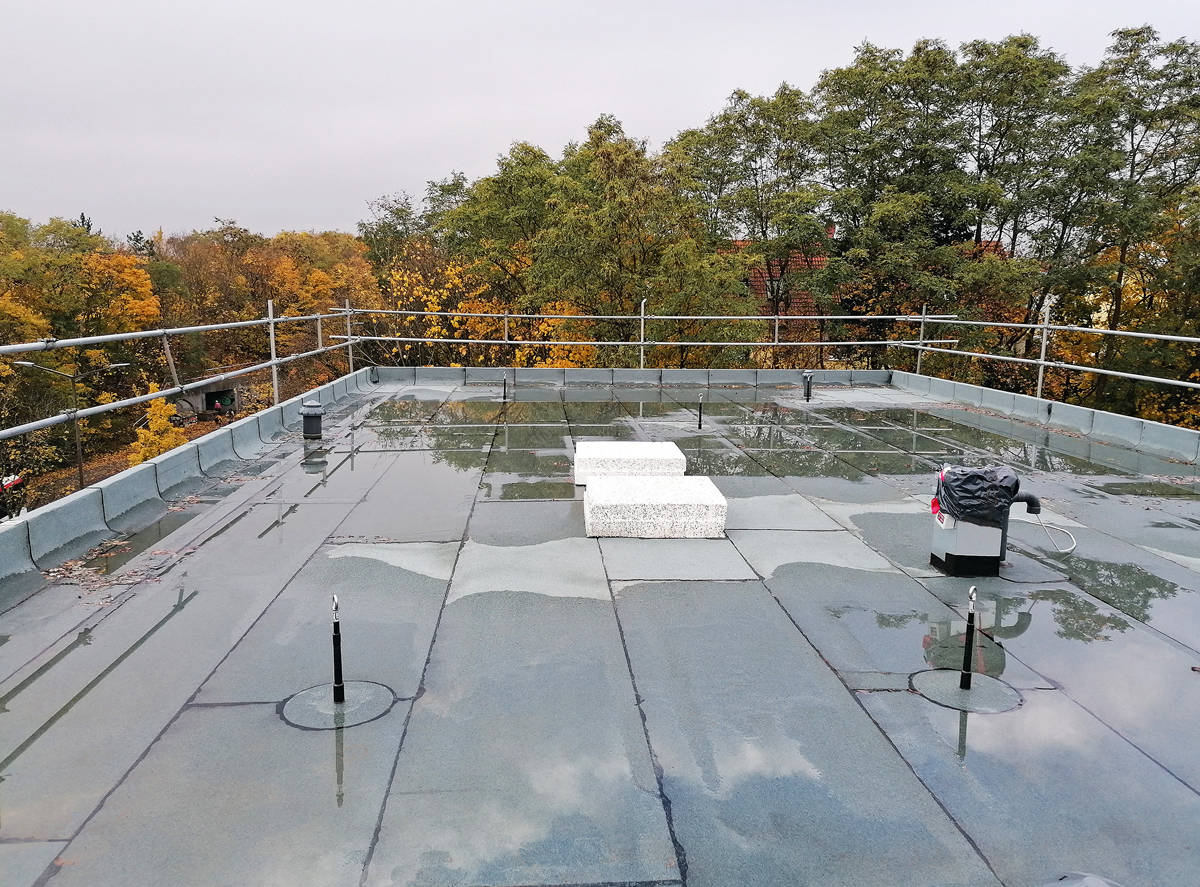 Und genau das wird am Bau stark nachgefragt: Schutzlösungen müssen zwar sicher, aber eben auch praxisorientiert entwickelt sein. Sie sollen gewohnte Arbeitsabläufe möglichst wenig beeinflussen. Harald Rösch, Bauleiter bei Jüttner & Straub, ist mit dem Sifatec-Seitenschutz zufrieden: »Vom Aufbringen der Wärmedämmung und der Abdichtungsbahnen über die Montage der Attikaabdeckungen bis hin zum Anlegen der Dachbegrünung gewährleistete die Flachdachabsturzsicherung komfortables und freies sowie zu jeder Zeit sicheres Arbeiten.« J