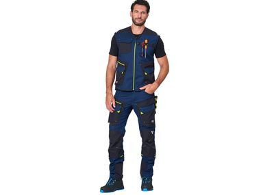Darüber hinaus gehört zur Kollektion auch eine Hose: Diese ist mit einem Reißverschluss und einer Knopfleiste sowie einem elastischen Bund auf der Rückseite ausgestattet. Auch eine Hammertasche und ein Stifthalter gehören zu den Features der »Nilo«-Hose. Mit zahlreichen Taschen und großen Fächern, dem abriebfesten Verstärkungsgewebe an den Knien, Abnähern für mehr Bewegungsfreiheit wird sie zum passenden Begleiter im Arbeitsalltag Zur Kollektion gehören zudem eine Latzhose sowie eine Schürze, die eine hohe Robustheit im Einsatz versprechen.