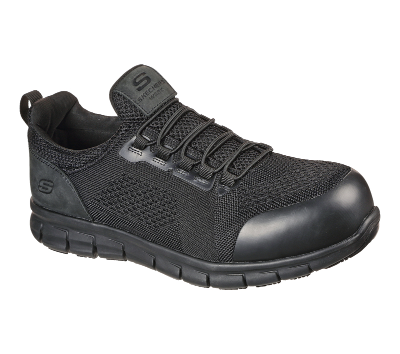 Das »Work«-Modell »Synergy - Omat« als Slip-On-Variante wiederum soll laut Skechers leichtes An- und Ausziehen bieten. Der Slipper mit Stretch-Schnürung besteht im Obermaterial aus Mesh, Leder und TPU. Gleichzeitig ist der S1P SRC ESD zertifizierte Sicherheitsschuh mit einer extrem leichten Aluminium-Schutzkappe versehen und einer stark rutschhemmenden sowie durchtrittsicheren Laufsohle. Das macht ihn ideal für die Anwendung in Warenlager oder innerhalb von Werkstätten. J
