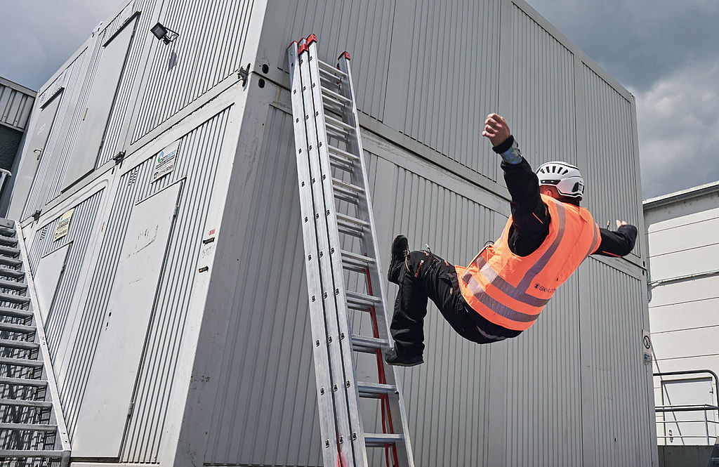 Die »Skyvest« ist mit einem intelligenten System ausgestattet, das alle lebenswichtigen Körperstellen schützt und kabellos funktioniert. Optimal eignet sie sich in einer Höhe zwischen 1,70 m und 3,20 m. Wenn Personen abstürzen, sind die Verletzungen tendenziell schwer. Das gilt auch schon bei geringeren Höhen von unter zwei Metern – etwa bei der Arbeit auf Gerüsten oder Leitern. Dabei passieren rund zwölf Prozent aller tödlichen Absturzunfälle; 2020 wurden allein bei der BG Bau 3 000 Absturzunfälle im Zusammenhang mit Leitern gemeldet. Rund 50 Prozent aller tödlichen Absturzunfälle ereignen sich laut einer statistischen Erhebung der Bundesanstalt für Arbeitsschutz und Arbeitsmedizin (BAuA) für den Zeitraum von 2009 – 2015 aus weniger als fünf Metern Höhe.