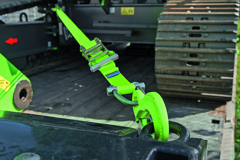 SpanSet bietet das neue Schwerlastzurrsystem »MaXafe« in zwei Varianten mit diversen Verbindungselementen an: Mit einer Lashing Capacity (LC) von 5 000 und 50-mm-Bandbreite oder mit hochfesten Verbindungselementen und im Carlash-Prinzip doppelt gelegtem Gurtband mit einer zulässige Zurrkraft von LC = 10 000 mit 50 mm Bandbreite. x