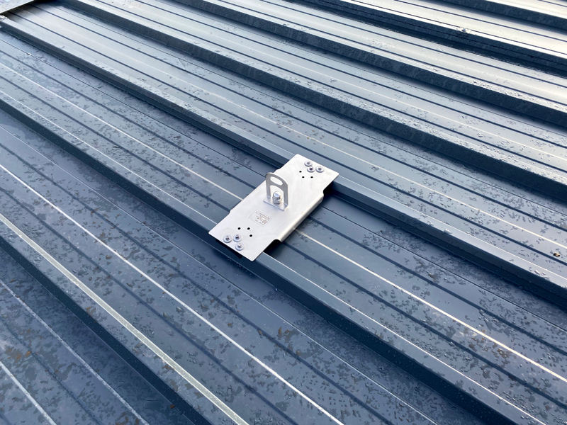 Der Einzelanschlagpunkt verfügt über eine Multilochung für Standard- Obergurt-Abstände von 250 mm oder 333 mm und kann in der Praxis von bis zu drei Personen gleichzeitig genutzt werden. Das Produkt dient darüber hinaus in den Edelstahlseilsystemen »LUX-top FSE 2003« nach DIN EN 795 Typ C wahlweise als Anfangs-, End- oder Eckpunkt sowie als Zwischenpunkt, optional auch mit überfahrbarer Seilführung. Der Anschlagpunkt ist zudem kompatibel mit temporären horizontalen Anschlageinrichtungen bzw. temporären horizontal beweglichen Führungen nach DIN EN 795 Typ C. J