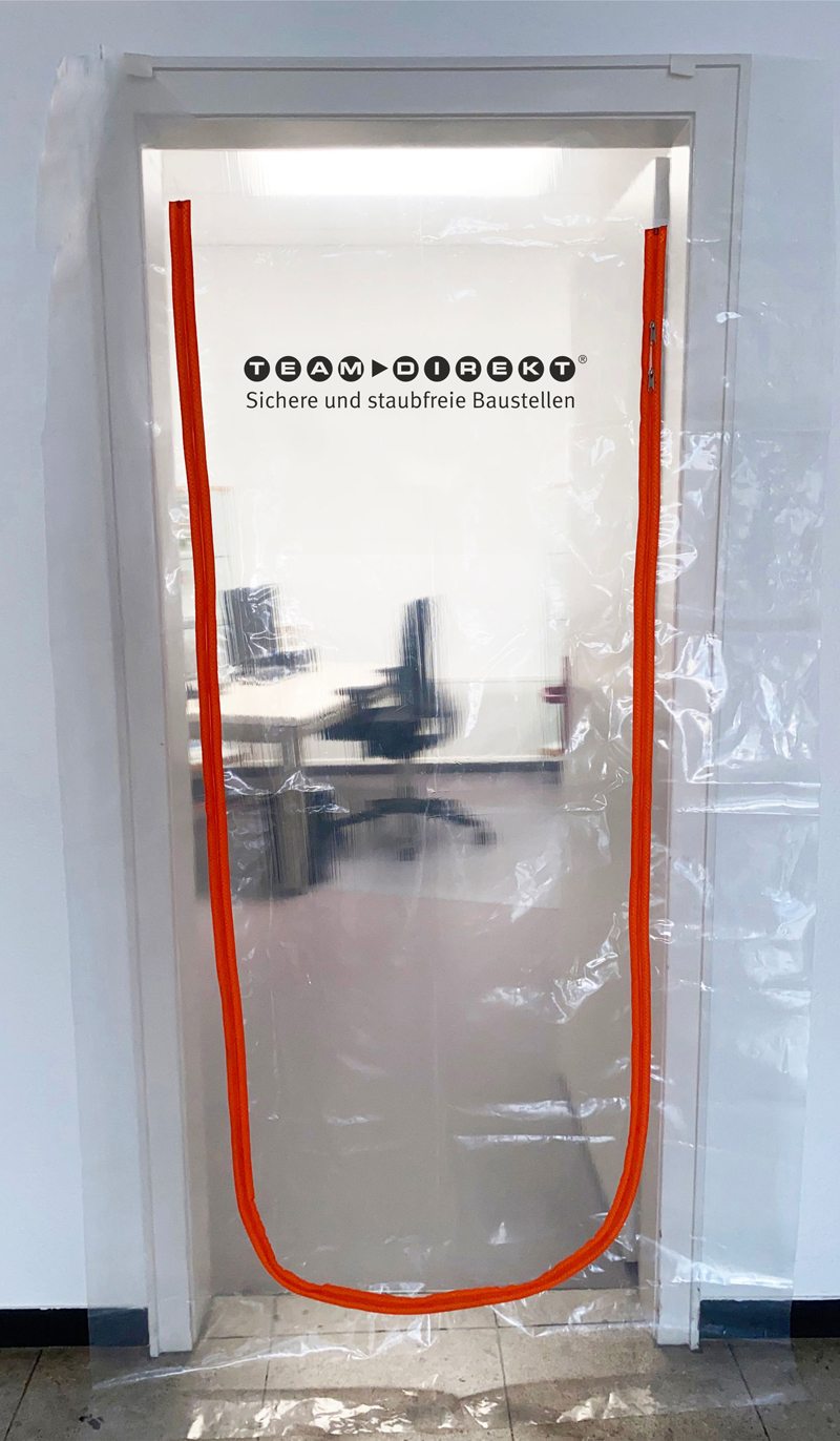 »Die Staubschutztür ist die wirklich einfachste Methode, die Ausbreitung von Staub, der bei Sanierungs- oder Renovierungsarbeiten entsteht, in Nebenräume zu verhindern«, sagt Binder und erklärt: »Im Grunde genommen handelt es sich bei Staubschutztüren nämlich um Folienzuschnitte, die mittels rückstandslos abziehbarem Klebeband oder alternativ mit Schnellspannern in den Türrahmen geklebt beziehungsweise gespannt wird.« Die Vorteile liegen laut Jan Binder auf der Hand: Staubschutztüren halten Staub zuverlässig in dem Raum, in dem gearbeitet wird. Nach getaner Arbeit lassen sich außerdem alle Komponenten abwischen, zusammenlegen, abtransportieren und auf der nächsten Baustelle erneut verwenden. Obendrein sind Staubschutztüren eine preisgünstige Anschaffung.