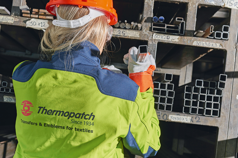 Schutzkleidung im Rahmen der PSA erfordert hingegen angepasste Veredelungsprodukte und Aufbringungsverfahren. Hier gilt es, vorab die Anforderungen des Textils an die jeweilige Verwendung zu kennen und die Haltbarkeit der Patchmaterialien auf den Geweben zu prüfen. Beispielsweise kann die Außenseite einer Arbeitsjacke geeignet sein, besteht aber das Innenfutter aus empfindlichen Kunstfasern, können diese verschmelzen. Die hohen Temperaturen bei der Applikation können auch bei beschichteten Materialien wie Wetterschutzkleidung problematisch sein und eventuell deren Funktion beeinträchtigen. Zudem muss das Textil von seiner Größe überhaupt in die Transferpresse passen. Und schließlich kann die Lage von Reißverschlüssen, Knöpfen oder Nähten einer Kennzeichnung im Patchverfahren unter Umständen im Wege stehen. In diesen Fällen sind alternative Verarbeitungsarten, z. B. die Verwendung von Stickereien, zu prüfen. J