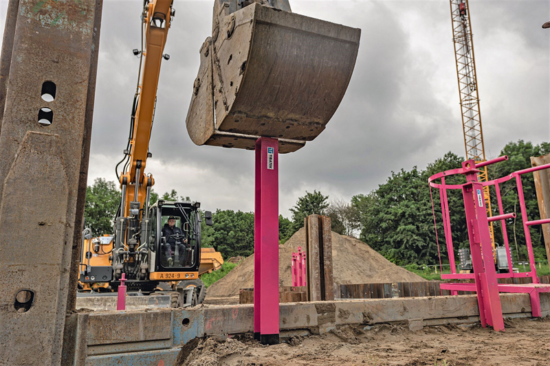 Eine weitere Entwicklung im Bereich der Tiefbautechnik ist die patentierte Absturz-Sicherung »AS 16«. Bislang musste für den Einsatz von Absturzsicherungen einer Baugrube ein erheblicher zeitlicher Aufwand investiert werden.