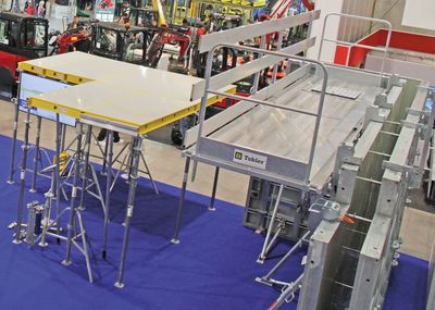 Neben Schalungen setzt die Tobler-Gruppe auch auf Baustellengerüste. So sind neue, versetzbare Treppentürme für den Grubenzugang sowie für den Aufgang auf Brücken in verschiedenen Größen erhältlich. Baustellenzugänge auf Modulgerüstbasis und Kabelbrücken wurden nach Angaben des Unternehmens weiter verbessert und sollen so noch mehr Vielfalt bieten. Für die Bewehrungsgerüste kommen »Mato 3«-Bordbretter zum Einsatz, die als Besonderheit auf jede Art von Modulgerüst passen und somit herstellerunabhängig sind.