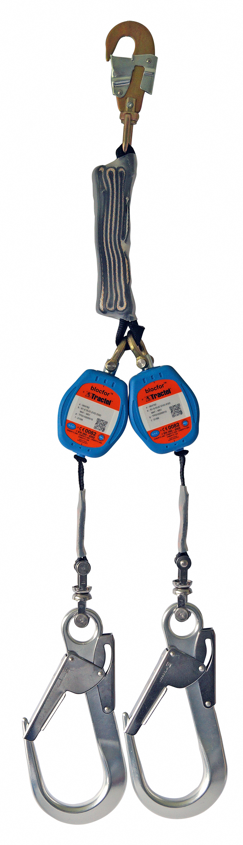 Je nach Tätigkeit können Anwender in Situationen geraten, in denen sie ständig zu einem anderen Anschlagpunkt wechseln müssen. Aufgrund der Tatsache, dass sie sich wahrscheinlich in einem Bereich befinden, in dem eine Absturzgefahr besteht, müssen die Benutzer ständig angeschlagen sein. Deshalb hat Tractel einen doppelten »Blocfor« entwickelt, den »Blocfor 1.8B DUO EVO ESD«. Mit diesem doppelsträngigen Höhensicherungsgerät können sich Anwender mit einem Karabiner an der Struktur befestigen und wenn diese ein Hindernis passieren oder zu einem anderen Anschlagpunkt wechseln müssen, sichern sie sich mit dem zweiten Karabiner an der darauffolgenden Struktur. Wenn der zweite Karabiner verbunden ist, kann der erste entfernt werden.