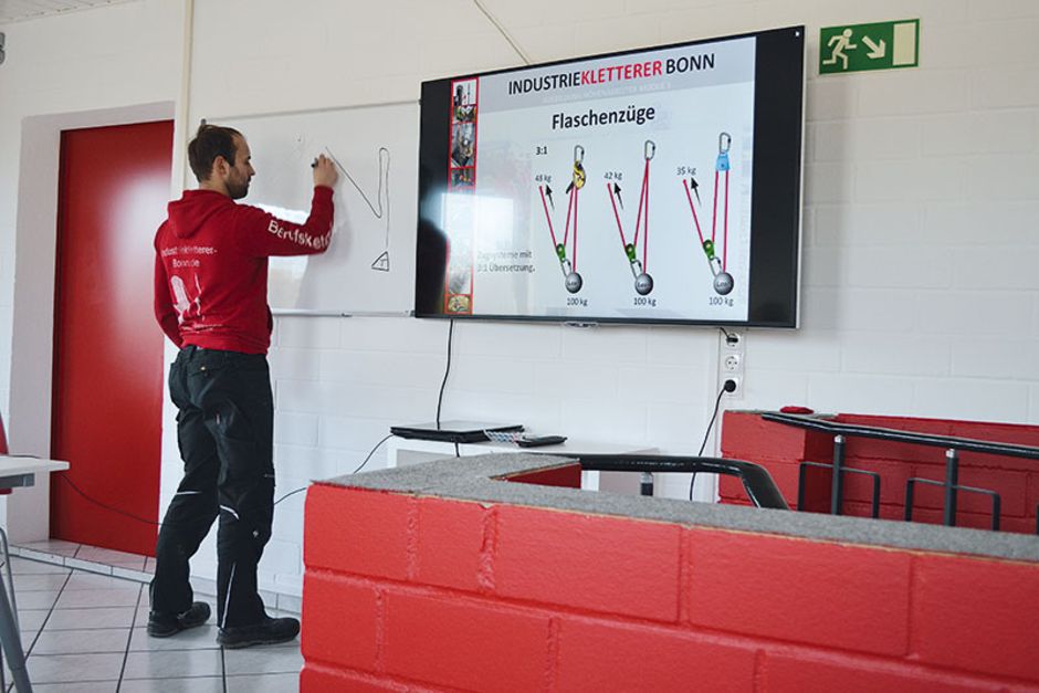 Mit dem Umzug nach Troisdorf war eine Investition von rund 1 Mio. Euro verbunden. Das Ziel von Firmeninhaber und Geschäftsführer Toni Harbig_ Ein einzigartiges Indoor-Outdoor-Schulungszentrum für Seiltechnik und Arbeitsschutz zu schaffen. Von der modernen Ausstattung profitieren sowohl die Teilnehmer, die über dem Bürobereich in Empfang genommen werden und dort den Schlüssel für eine eigene Umkleidekabine samt Spind bekommen. Auch die hauseigenen Dozenten freuen sich über zahlreiche Annehmlichkeiten für die moderne Erwachsenenbildung_ In den Unterrichtsräumen stehen technische Features wie Media-Anlagen oder auch Flipchart bereit. Das »Drumherum« bietet moderne sanitäre Einrichtungen und eine gemütliche »Chill Out Lounge«, in der die Teilnehmer bei einem Kaffee ihre Erfahrungen austauschen können.