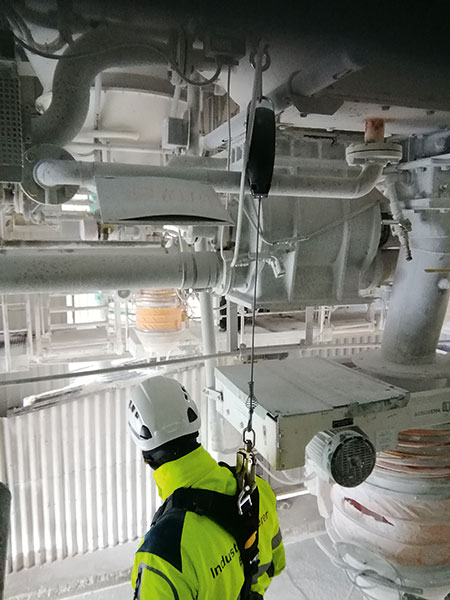 Die Schulungshalle ist sauber aufgeteilt und in auffälligen Farben gestaltet, die das Farbkonzept der Industriekletterer Bonn widerspiegeln. Eine Brennwert-Heizanlage macht die Halle ganzjährig beheizbar – kein Zittern und Frieren also für die Schulungsteilnehmer im Winter. Eine hochmoderne Hallen- und Plattformbeleuchtung mit LED ermöglicht laut Harbig eine perfekte Lichteinteilung, die von den Trainern mittels Tablet-PC angesteuert werden kann. Automatische Tag-Nacht-Simulation oder Arbeiten bei Notbeleuchtung sind möglich. Unterstützt werden die praktischen Ausbildungseinheiten von einer 8 000-W-Soundanlage. Je nach Schulungsthema wird der Hintergrund mit Baustellengeräuschen oder Einsatzstellenlärm ausgefüllt.