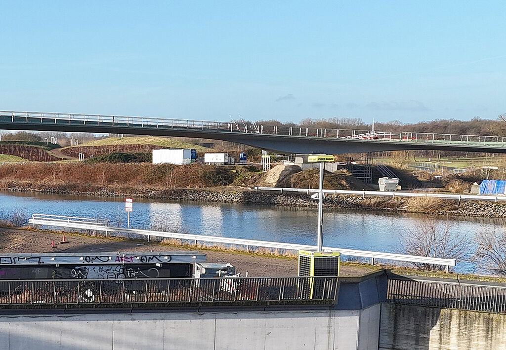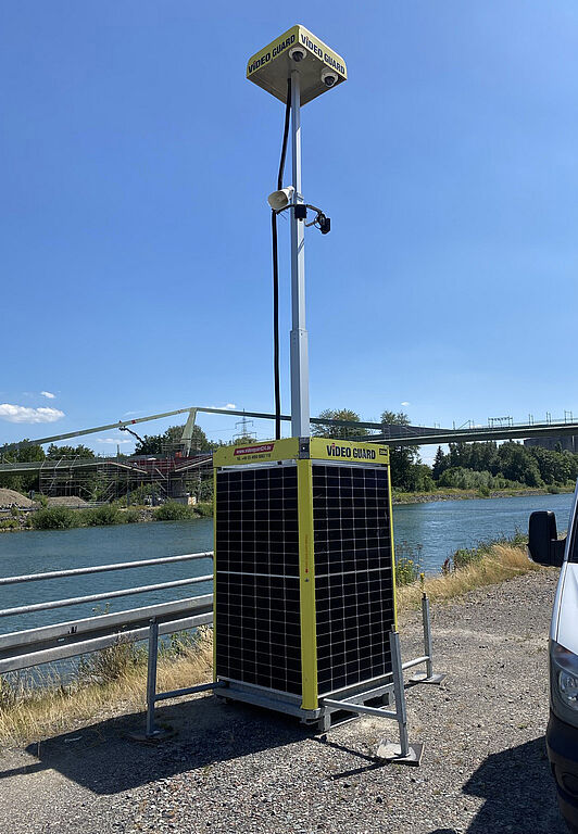 Einmal den Rhein-Herne-Kanal, zweimal die Emscher überqueren: Möglich wird das mit dem „Sprung über die Emscher“ am Wasserkreuz in Castrop-Rauxel. Die Brücke, die aktuell von der Emschergenossenschaft gebaut wird, überzeugt mit einer einzigartigen Optik. Damit hat sie das Potenzial, zu einem der beliebtesten Fotomotive der Region zu werden. Doch spektakuläre Projekte erregen bereits während der Bauphase Aufsehen – häufig nicht nur im positiven Sinn. So werden die Baustellen immer wieder Ziel von Vandalismus oder Diebe machen sich an Baumaterialien und -maschinen zu schaffen. Je auffälliger das Bauvorhaben, umso größer ist auch die Anziehungskraft für Schaulustige. Damit diese nicht unbefugt das Areal betreten und sich selbst in Lebensgefahr begeben, müssen die Flächen gesichert werden. Die Projektverantwortlichen des Projektes an der Emscher setzen daher zur Sicherung des Geländes auf das intelligente Kamerasystem Video Guard.