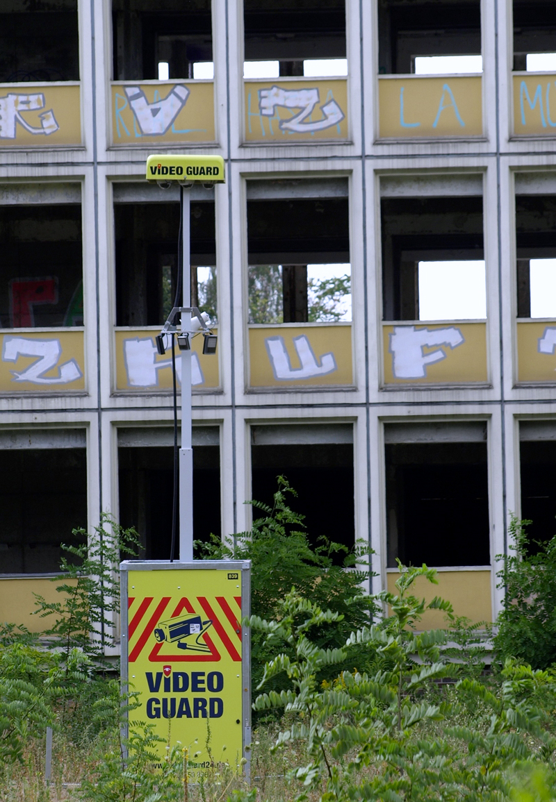 Seit Mitte der 1990er Jahre wartet der Block E des Berliner Rundfunkzentrums Nalepastraße auf seine neue Nutzung. Bis zur weiteren Entwicklung steht das mittlerweile entkernte Gebäude nun leer – und zieht immer wieder illegale, feierfreudige Gäste an. Da Aufzugsschächte, freie Dachflächen und ähnliches jedoch Risikofaktoren darstellen, haben die Verantwortlichen nicht nur die ersten Etagen abgesichert, sondern setzen auch auf eine effektive Videobewachung des Geländes. Beim Betreten Unbefugter schlägt diese nun Alarm.