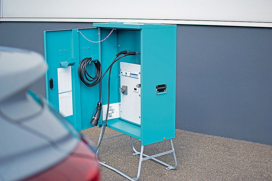 Der »R2Charger« ist eine neue Ladelösung der Walther-Werke aus Eisenberg, die das betriebssichere und einfache Laden von E-Fahrzeugen auf Baustellen ermöglicht. Der Hersteller hat das Produkt speziell für die besonderen Anforderungen und Bedingungen, die auf Baustellen herrschen, ausgelegt.