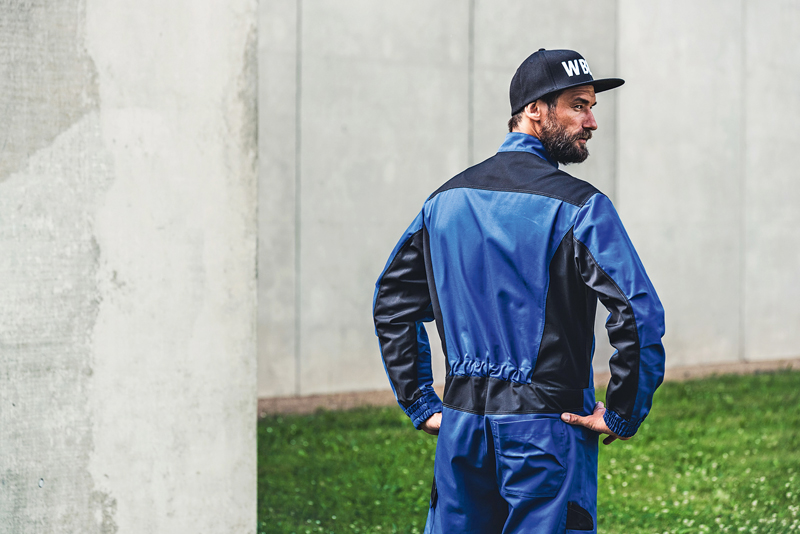 Auch bei den Jacken und Mänteln ist an die Details gedacht worden: Die Brust- und Vordertaschen sind mit verdeckten Druckknöpfen und Bewegungsfalten ausgestattet. Die Bündchen am Arm verfügen über flexible Gummieinsätze, sodass bei Bedarf der Ärmel nach oben geschoppt werden kann. Großer Wert wurde laut Weitblick beim Design auf die individuelle Veredelungsmöglichkeit gelegt: Zahlreiche Möglichkeiten von der Taschenpatte am Oberarm oder auch auf der Rückenpartie sind für ein Corporate Branding vorgesehen. Und auch die so häufig als altmodisch und konservativ verschrienen Latzhosen und Overalls erhalten bei Weitblick ein modernes Comeback: Abgesetzte Farbpartien und seitliche Stretchbereiche bei der Latzhose lassen die Einteiler optisch schmaler wirken und geben einen dynamischen Look. Ein in der hinteren Mitte befindliches Knopflochgummi sorgt zudem für noch mehr Flexibilität – je nach Silhouette und Situation lässt sich so ein körpernaher oder eher legerer Fit wählen.