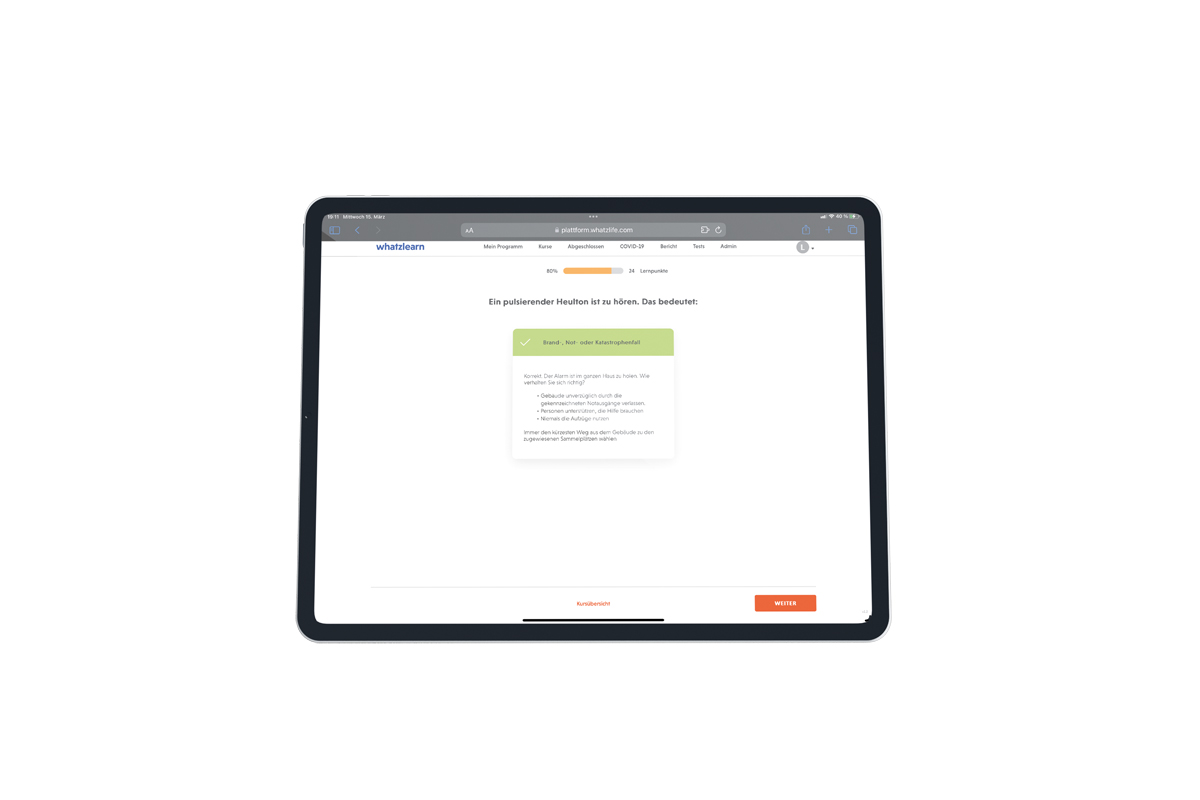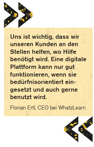Zudem wird die Welt immer digitaler und auch im Bereich der Bildung und Weiterbildung muss sich etwas tun. Digitales Lernen gibt es ja schon lange, aber es war eigentlich immer nach »innen« ausgerichtet und in der Regel mühsam statt einfach. Für Mitarbeiter, die einen permanenten Zugang zum Computer am Arbeitsplatz haben. Die Kollegen, die in der Produktion oder auf der Baustelle sind, aber auch Externe wie Zeitarbeitsnehmer oder Handwerker, wurden dabei oft vergessen. Einweisungen oder Sicherheitsunterweisungen wurden in Präsenz durchgeführt – und damit werden Ressourcen gebunden und die Dokumentation ist schwierig. Mit WhatzLearn haben wir es geschafft, dass diese Art der relevanten Wissensvermittlung und Dokumentation einfach, digital und multilingual stattfindet – und in Echtzeit dokumentiert.
