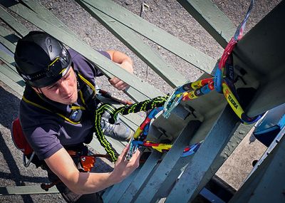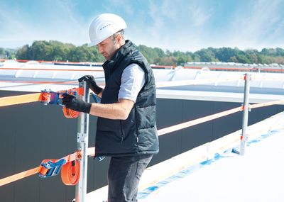 Ist kein zuverlässiger Anschlagpunkt vorhanden, so ist eine veritable Absturzsicherung im Sinne des Gesetzgebers nach DGUV (Spitzenverband der gewerblichen Berufsgenossenschaften und der Unfallversicherungsträger der öffentlichen Hand) nicht möglich. Der Anschlagpunkt bzw. die Anschlageinrichtung soll in erster Linie dazu dienen, das Verbindungsmittel (Rückhalte- oder Auffangvorrichtung) am Befestigungspunkt zu verankern. Dies kann beispielsweise ein T-Träger, ein Gerüst, oder eine andere Struktur sein. Dabei wird zwischen zwei Arten von Anschlagpunkten unterschieden. Erstens: permanente Anschlagvorrichtungen (z. B. horizontale Drahtseil-Sicherungen, horizontale Schienensysteme usw.) Zweitens: temporäre Anschlagvorrichtungen (etwa Trägerklemmen, Gerüsthaken, Anschlagschlaufen aus Gurtband). Nun kommt es in 75 Prozent aller Fälle immer wieder vor, dass Standardlösungen nicht einsetzbar sind oder das entsprechende Know-how zur Umsetzung eines PSA-Sicherheits-Konzeptes fehlt. Und hier kommt ein Spezialist wie das Unternehmen Wiedenmann, mit Hauptsitz im unterfränkischen Marktsteft, ins Spiel.