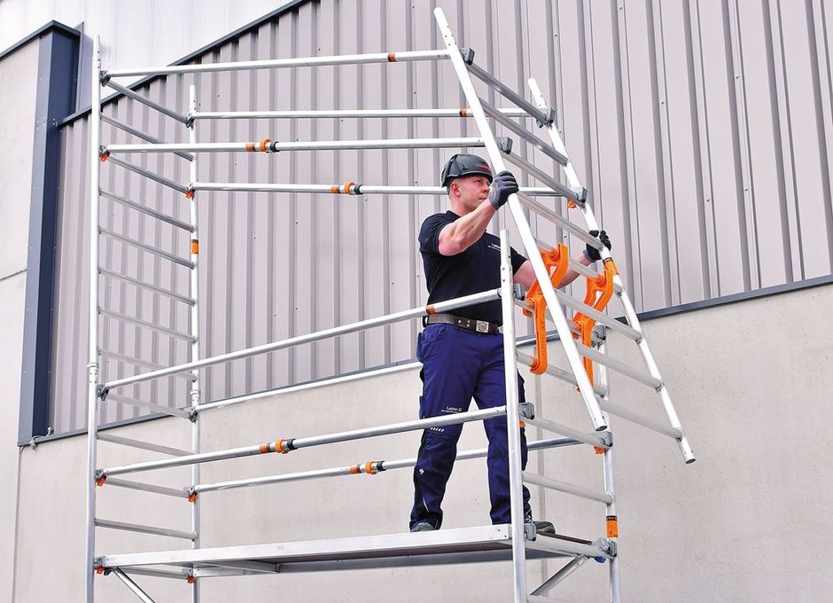 Layher-Fahrgerüste basieren auf einem Baukastenprinzip, sodass mit nur wenigen Einzelteilen viele Aufbauvarianten möglich sind: vom praktischen Fertiggerüst »Zifa« für Arbeiten in geringeren Höhen bis hin zum »Uni Komfort« mit bequemem Treppenaufstieg und komfortabler Arbeitsfläche. Für Planung und Auswahl des optimalen Fahrgerüsttyps steht mit dem »LayPlan«-Fahrgerüstkonfigurator ein praktisches und einfach zu bedienendes Tool bereit.