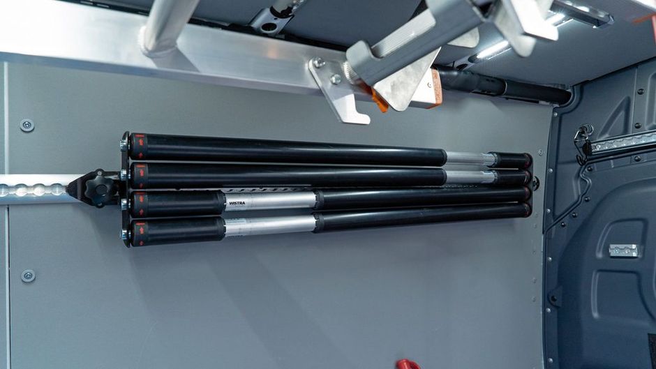 Der neue »Quattro«-Halter wurde speziell für die Sperrbalkensysteme »Pen-Beam« und »Twist-Beam« entwickelt. Der aus schwarz gepulvertem Stahl gefertigte Träger kann per Sterngriff ohne Werkzeug an jeder »Airline«-Schiene befestigt werden. Ebenso schnell funktionieren die Demontage und das Fixieren an einer anderen Position im Laderaum, falls die Fracht es erfordert, so Wistra. Das Set besteht aus zwei Parkwinkeln zur Aufnahme von bis zu vier Sperrbalken. Der von Wistra entwickelte »Twist-Beam« kann aufgrund seines speziellen Federmechanismus mit einer einfachen Drehung in »Airline«-Schienensystemen verankert werden. Das schnelle und unkomplizierte Arretieren in den Zurrpunkten erleichtert insbesondere den vertikalen Einsatz der Sperrstange. Bediener können die Sperrstange in den Bodenzurrpunkten fixieren, ohne sich dafür hinunterbeugen oder in die Knie gehen zu müssen. Bei hohen Aufbauten entfällt das Überstrecken des Körpers, weil sich die Sperrstange bequem mit einer ergonomischen Haltung bedienen lässt.