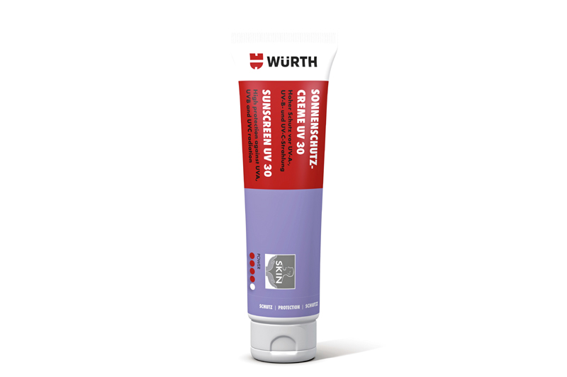 Für den sicheren Schutz unbedeckter Hautareale möchte der Hersteller Adolf Würth mit dem Sonnenschutzspray »UV 50« und der Sonnenschutzcreme »UV 30« zwei bewährte Lösungen anbieten. Ersteres realisiert nach dem Auftragen einen sofortigen Schutz vor mittlerer bis hoher natürlicher UV-A- und UV-B-Strahlung bis Lichtschutzfaktor 50 und ist somit auf das Arbeiten im Freien abgestimmt. Die Sonnenschutzcreme hingegen erzeugt auf der Haut einen wasserfesten Schutzfilm gegen alle natürlichen sowie künstlichen UV-Strahlen (UV-A, UV-B und UV-C) mit einem Lichtschutzfaktor bis 30 und entfaltet daher auch beim Lichtbogenschweißen eine ausreichende Schutzwirkung. Die Formeln beider Produkte sind laut Hersteller komplett parfümfrei und enthalten unter anderem Vitamin-E- Acetat. Dieses, so Würth, reduziere nicht nur die Gefahr von Zellschäden, sondern mache außerdem die Haut glatt und geschmeidig und übe dadurch noch eine pflegende Wirkung aus.