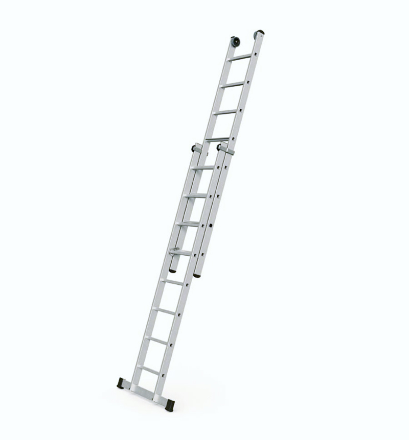 Das Gewicht der Leiter bietet dabei einen großen Vorteil: Aufgrund der Kombination von Stufen im Arbeits- und der Sprossen im Zustiegsbereich, ist die »Everest Plus 2E« besonders leicht. Die zweiteilige Stufen-Schiebeleiter ist für den Einsatz als Zugang und erhöhter Arbeitsplatz gedacht und ist sowohl drinnen als auch draußen einsetzbar. Ein Beispiel: Auf einer Baustelle kann sie als Verbindungsweg zwischen zwei Etagen und als Hilfsmittel für Arbeiten an Wänden dienen. Dabei sind Arbeiten ausschließlich auf der Oberleiter zu verrichten, da ihre 80 mm tiefen »Safer Step«-Stufen einen festen Stand und damit ein hohes Maß an Arbeitssicherheit ermöglichen. Mit diesen Stufen erfüllt die Leiter alle Anforderungen auf dem aktuellen Stand der Technik (TRBS 2121 Teil 2 und DIN EN 131 Teil 1-3). Darüber hinaus ist sie äußerst flexibel verwendbar: Aufgrund ihrer freien Höhenverstellbarkeit lässt sich die Leiter schnell an verschiedene Gegebenheiten im Einsatz anpassen – die maximale Arbeitshöhe beträgt sieben Meter. Hinzu kommt, dass sie leicht und daher einfach zu handhaben ist. Der Grund: In der Unterleiter sind Sprossen verbaut, die im Vergleich zu Stufen leichter sind und so das Gesamtgewicht minimieren.