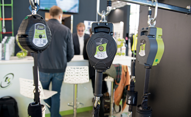 Zu den vorgestellten Neuheiten zählte unter anderem das Höhensicherungsgerät »Kronos«. Es wurde nach DIN EN 360 zertifiziert und erfüllt damit die Prüfparameter sowie Anforderungen für Höhensicherungsgeräte mit einziehbarem Verbindungsmittel. »Ausgelegt ist das System auf ein maximales Anwendergewicht von 140 kg. Zudem haben wir das System mit einem zehn Meter langen Stahlseil ausgestattet«, so Christopher Koch, Salesmanager DACH bei Kratos Safety. Das Gehäuse sei zudem aus robustem, aber leichtem Polyamid gefertigt, weshalb das »Kronos« laut Kratos-Experten samt Gehäuse und Seil rund 4,8 kg wiege. »Das geringe Gewicht begründet sich in der ohnehin kompakten Bauweise und letztlich auch darin, dass wir die Karabinerschnallen aus Aluminium fertigen«, fügte Koch an. Die Besonderheit des neu konzipierten Höhensicherungsgeräts sieht er im speziellen Mechanismus: »Aufgrund des Slow-Retraction-Kabels fährt es in kontrollierter Geschwindigkeit ein und bremst automatisch ab.« Geeignet sei das Gerät daher für die Installation unter der Decke oder bei Arbeiten mit längeren Seilauszügen, wo etwa der Rücklauf nicht mit der Hand gesteuert werden könne. »Die Automatisierungsfunktion schützt den inneren Mechanismus und kann die Lebensdauer des Höhensicherungsgeräts verlängern.« Grundsätzlich, so Christopher Koch weiter, solle »Kronos« die Produktivität und Funktionalität steigern und Arbeitsabläufe gezielt vereinfachen. Erhältlich ist die Neuentwicklung aus dem Hause Kratos zu Beginn des kommenden Jahres. Ebenfalls vertreten waren am Stand von Kratos Neuheiten wie das »Helixon-S«-Höhensicherungsgerät mit zehn Meter langem Stahldrahtseil und automatischem Rückzug sowie dessen Pendant »Olympe« mit Aluminiumgehäuse und verzinktem Stahlseil, das über eine Länge von 15 m verfügt.