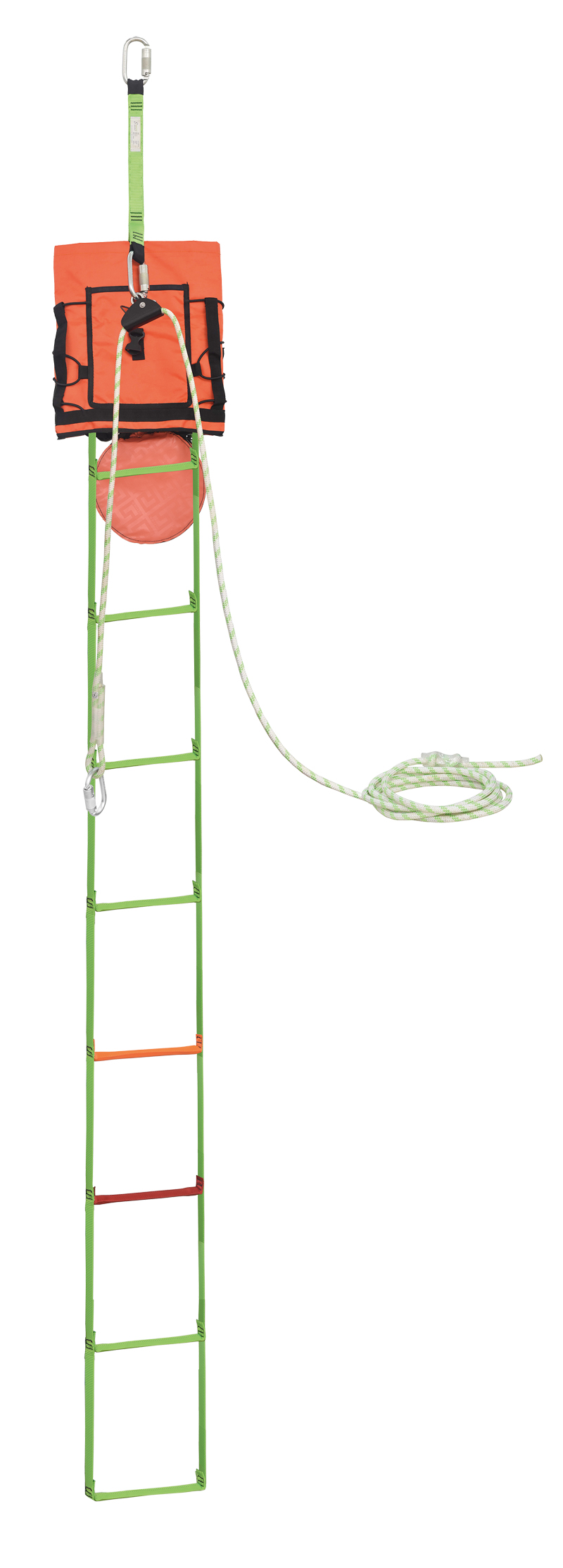Und auch das Thema Rettung stand für Kratos Safety in Düsseldorf auf dem Plan. So hat das Unternehmen ein spezielles Rettungskonzept entwickelt, das kompakt in einem Rucksack zusammengefasst ist. »Dabei handelt es sich um eine kostengünstige Lösung, die sich einfach bedienen und verstauen lässt«, so Christopher Koch. Enthalten ist eine sechs Meter lange Strickleiter aus besonders robustem Material samt Nachsicherung. „Gedacht ist das Konzept zur Rettung von Personen, die bei Bewusstsein sind. Ein großer Vorteil der Strickleiter ist, dass die zu rettende Person weniger Stress ausgesetzt wird, da sie über die Strickleiter wieder problemlos aufsteigen kann und ein Hängetrauma vermieden wird«, ergänzte Koch. Mit Inhalt kommt der Rucksack auf ein Gesamtgewicht von 3 kg, weshalb diese Rettungslösung einfach zu verstauen und mitzuführen ist.